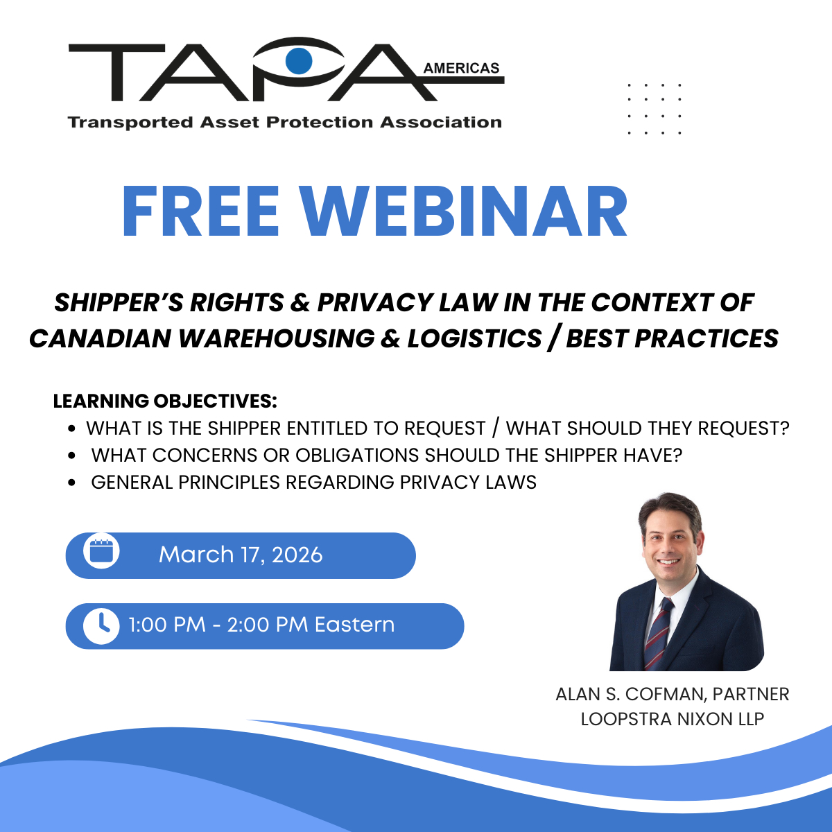 Please register for Shipper’s Rights & Privacy Law in the Context of Canadian Warehousing & Logistics / Best Practices